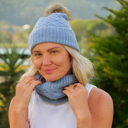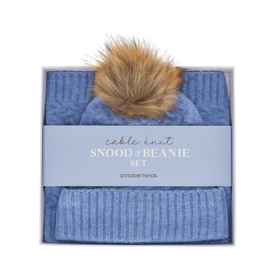 The Beanie and Snood Set makes a gorgeous gift in the quality gift box! The beanies have a cute faux fur pom pom and the snood is a compact neck wrap, perfect for the chilly weather. The sets are made from a super soft acrylic fibre – not scratchy!!Three versatile colours to choose from. 23cm x 25cm x 6cm