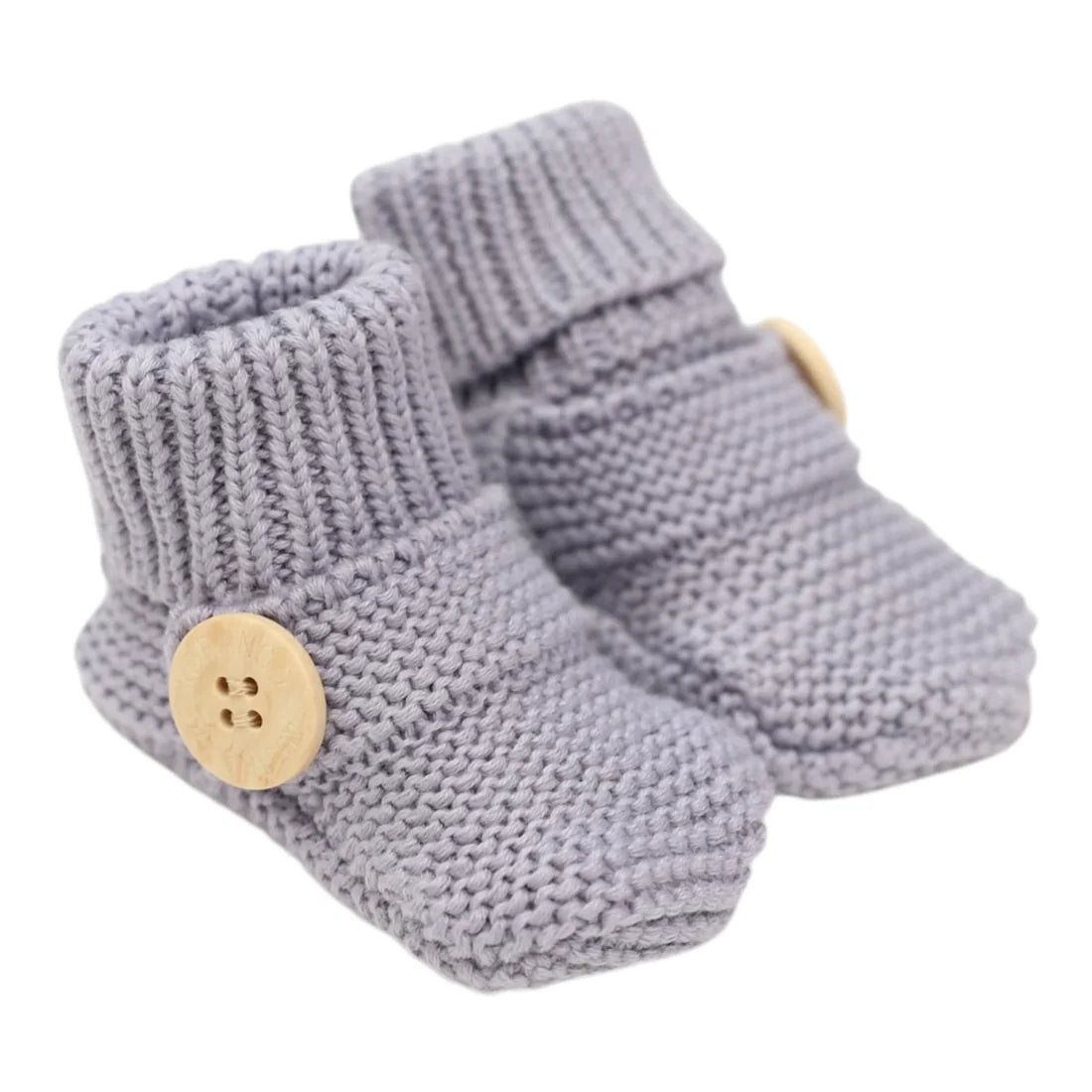 Cotton Knit Button Bootie with Gift Box | Dusty Blue