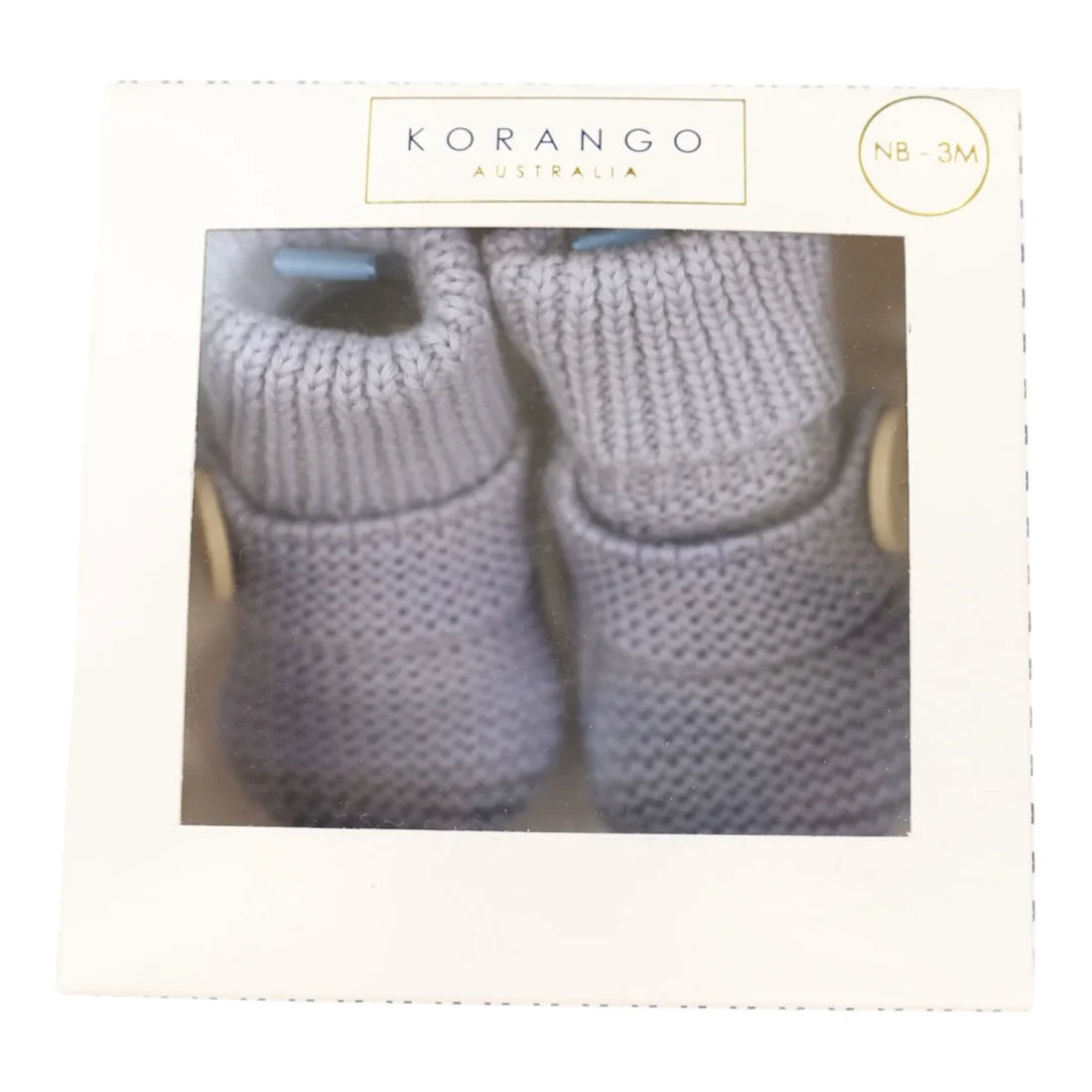 Introducing the most stylish and comfortable baby booties ever! Korango's Dusty Blue Cotton Knit Button Bootie with Gift Box is a must-have for newborns to 3 month olds. Soft, lightweight and expertly crafted, these adorable booties are knitted from the highest quality cotton for ultimate comfort. Featuring an iconic Korango wooden engraved button and branding on the back, these special booties arrive in a delightful windowed gift box – making them the perfect present for all parents! Pick up your pair of unbeatable Dusty Blue Cotton Knit Button Bootie with Gift Box styles today.