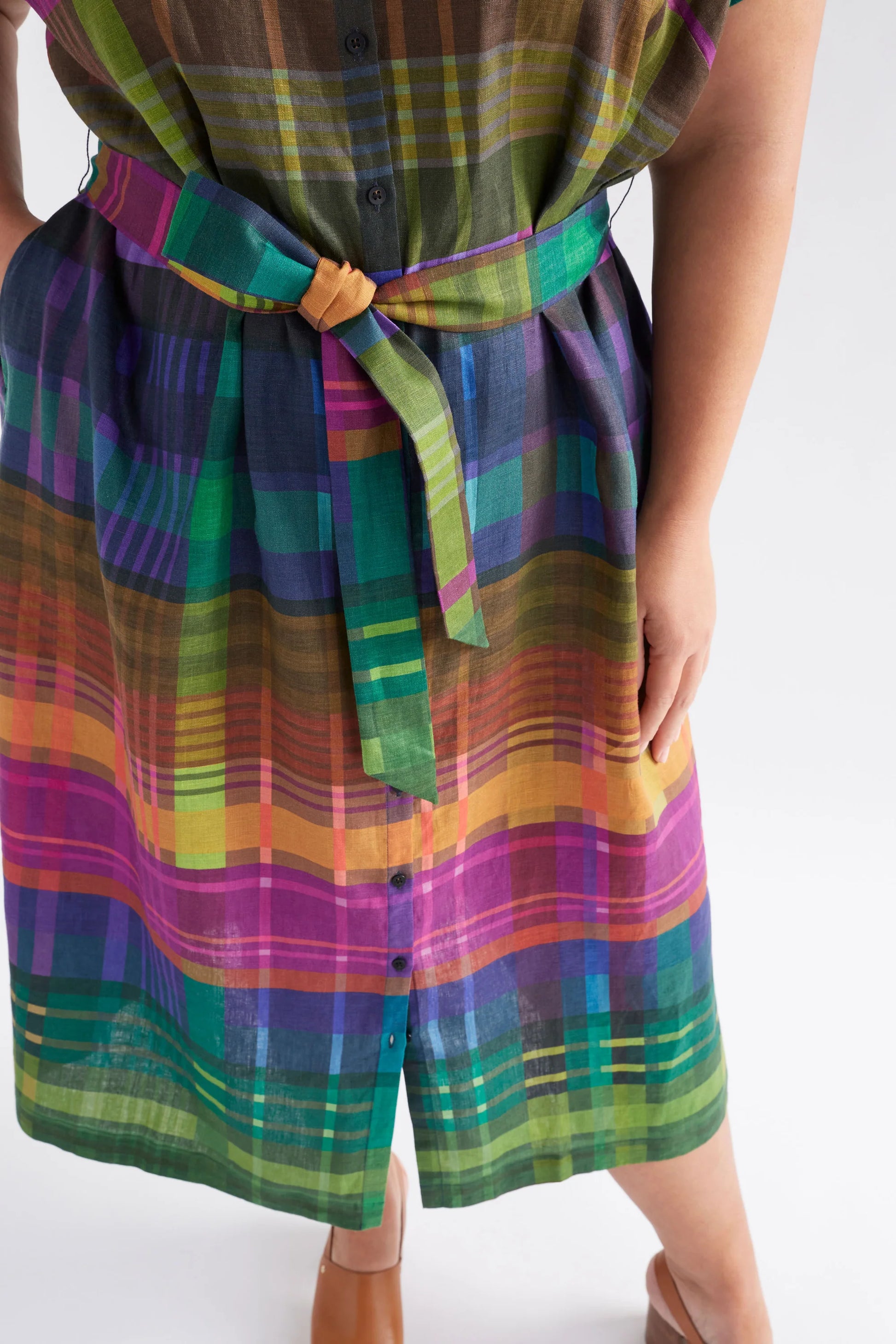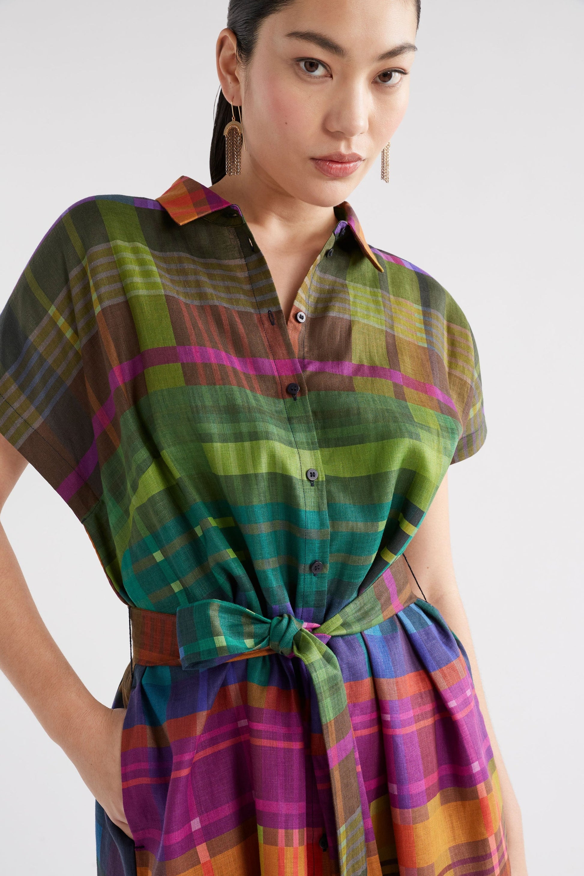 The Tilko Shirt Dress, an ELK classic, is reimagined in the vibrant seasonal Elodi Print, crafted on durable French linen. This versatile midi dress transitions seamlessly from work to weekend, featuring a button-through front, comfortable cap sleeves, functional side seam pockets, and a self-fabric belt. The bold Elodi Print effortlessly complements both neutral and bold colours. For a different style, wear it open as a robe over your favourite denim.