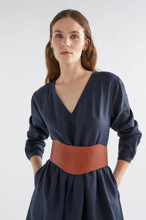 The Vinka Waist Belt is perfect for accentuating the waist line. With an elasticated fit for comfort, this belt can be worn with the leather bar fastenings at the back or the front for textural interest and can be worn over a relaxed dress to enhance the silhouette.