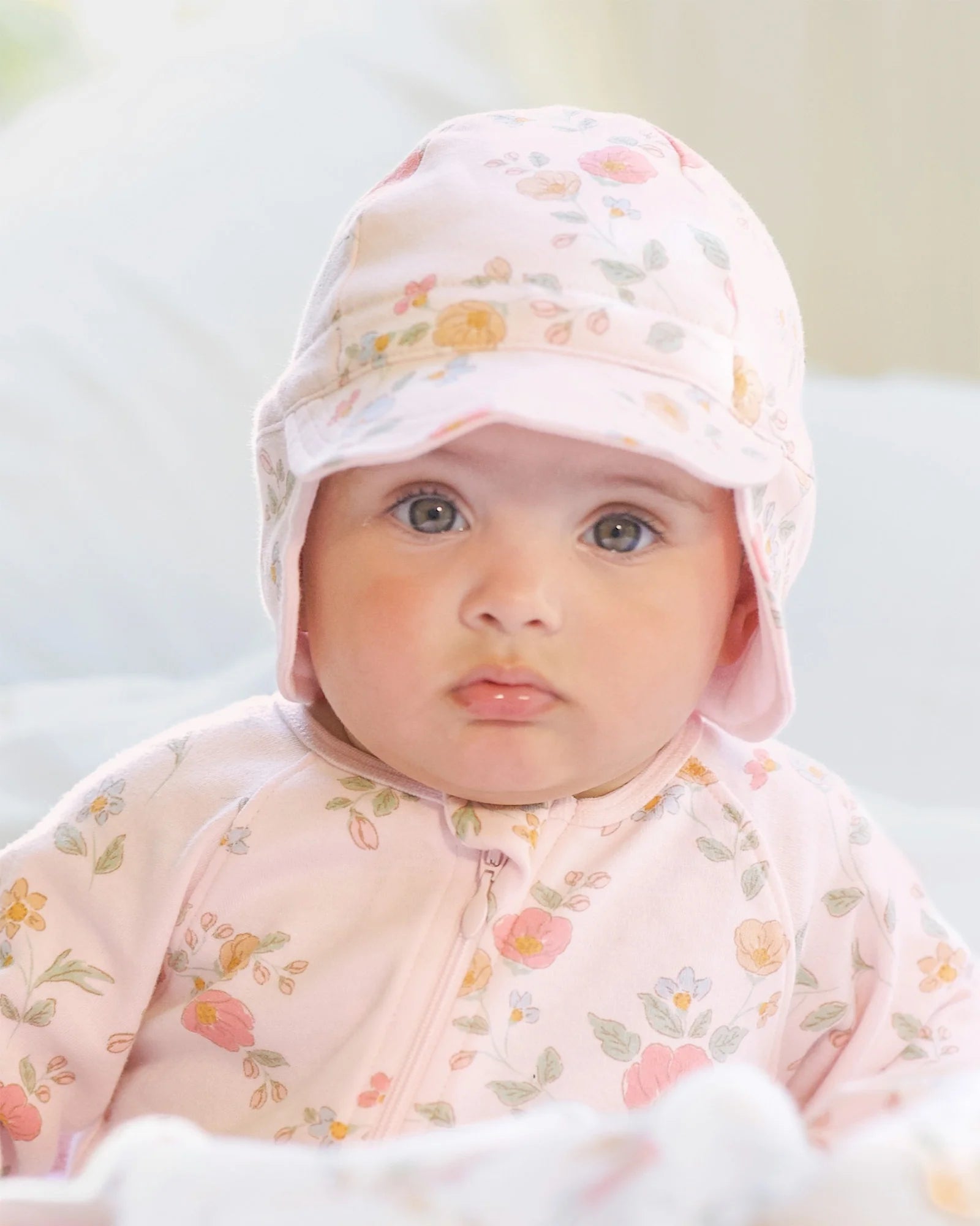 Toshi Flap Cap suits newborns, babies, and toddlers with UPF 50+ sun protection for everyday outdoor play, beach days, and swims. The contoured neck flap adds extra UV coverage where little ones need it most.
