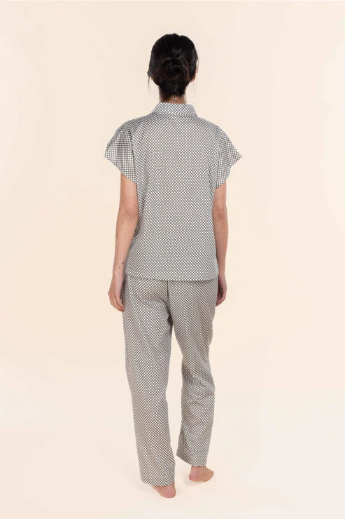 For effortless comfort that still looks put-together, the Marlie Pyjama Set in olive diamond print is your go-to. Crafted from naturally breathable cotton sateen, it’s designed to keep you feeling fresh on warm nights and comfortably snug when the weather cools. The relaxed fit lets you unwind with ease, while the timeless print makes every wear feel a little more special.