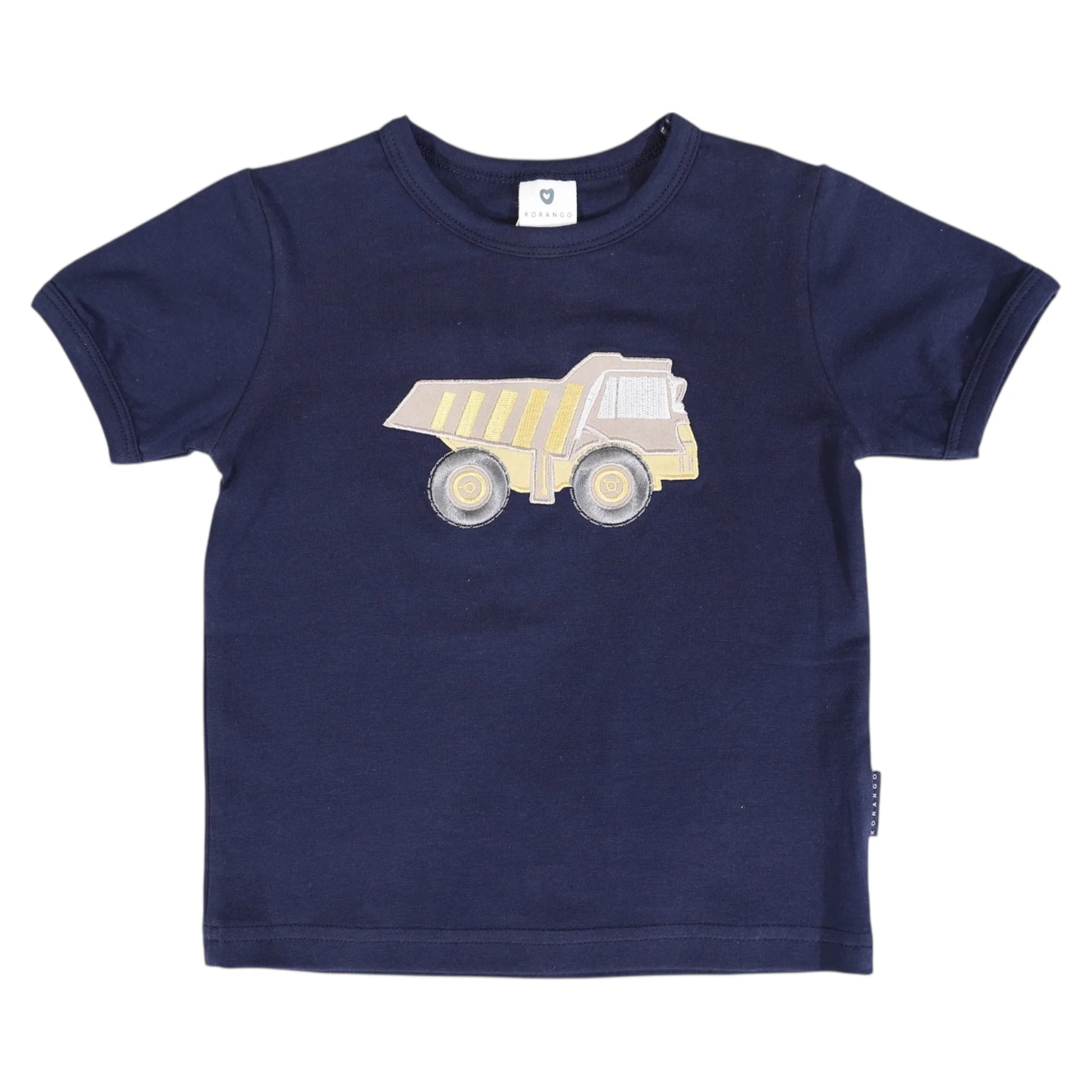 Get ready for fun with the Korango Boys Truck Applique Tee! Made from soft navy cotton, it's comfy for all-day play. Featuring a bold yellow dump truck design, it's perfect for little construction fans who love to explore. Durable, stylish, and ready for adventure!