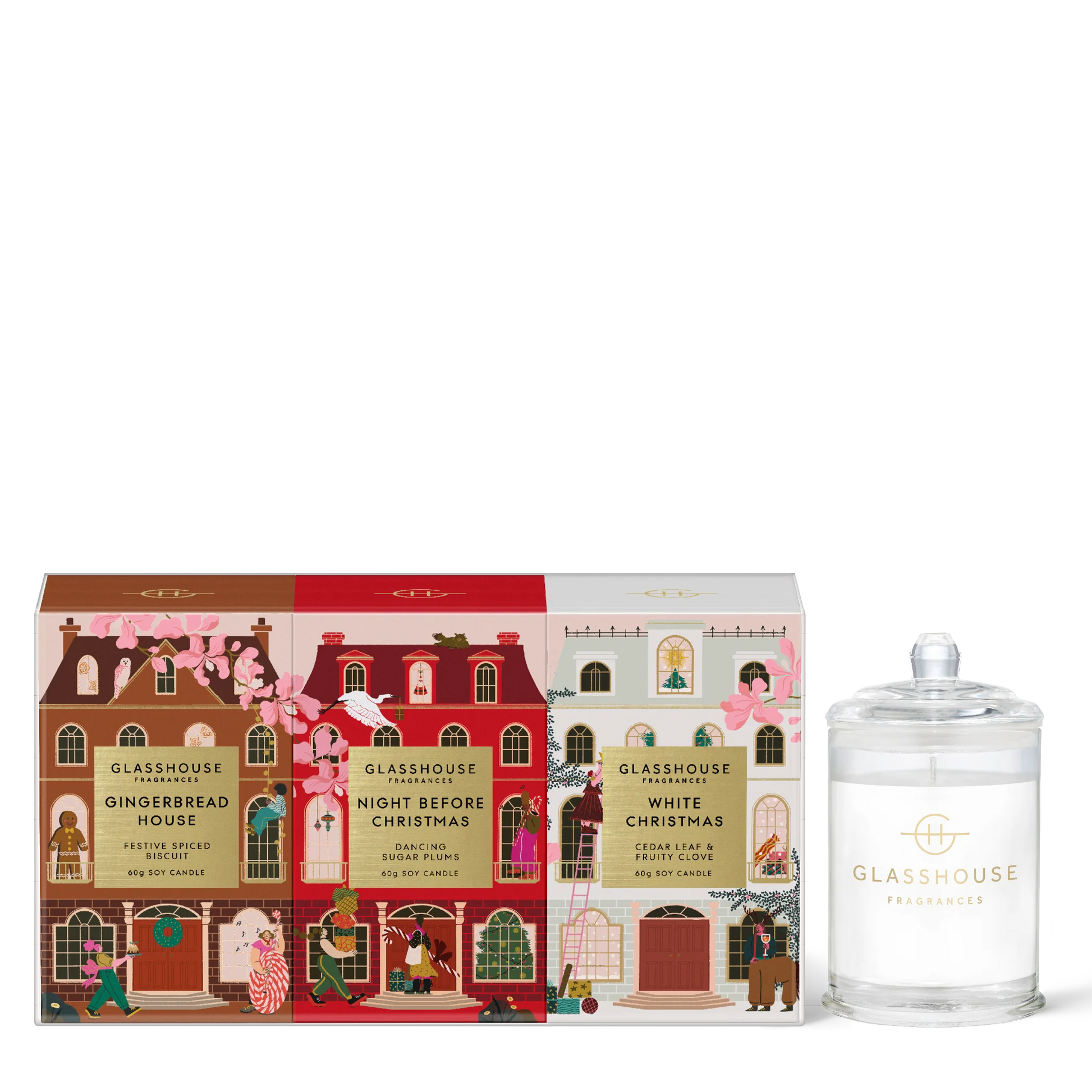 Contains: 3 x 60g Candles: Gingerbread House, Night Before Christmas & White Christmas