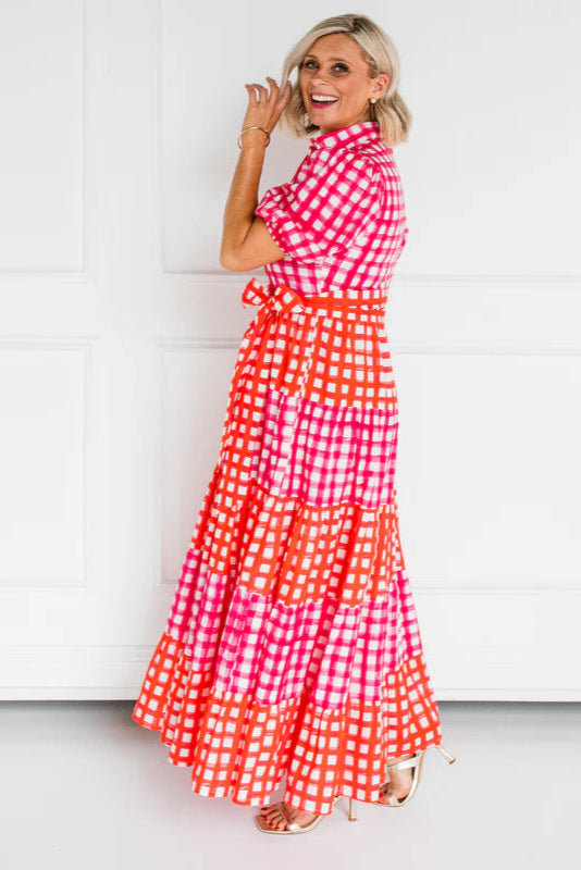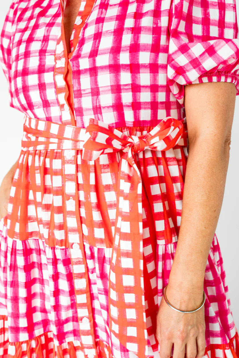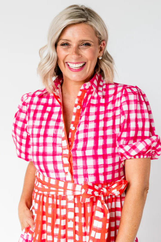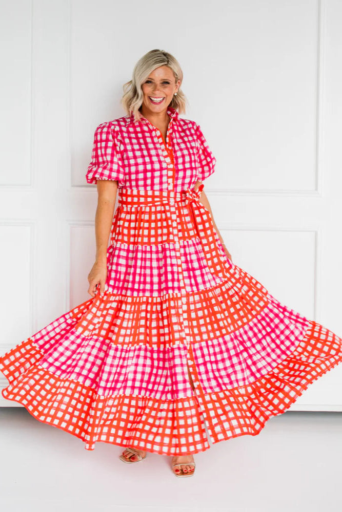 Get ready to turn heads in our Alice Dress! With its stunning pink and red gingham design, this maxi dress features a button up front and puff sleeves for a touch of whimsy. Made from lightweight cotton, this gorgeous dress also boasts a beautiful flared skirt, perfect for any occasion.