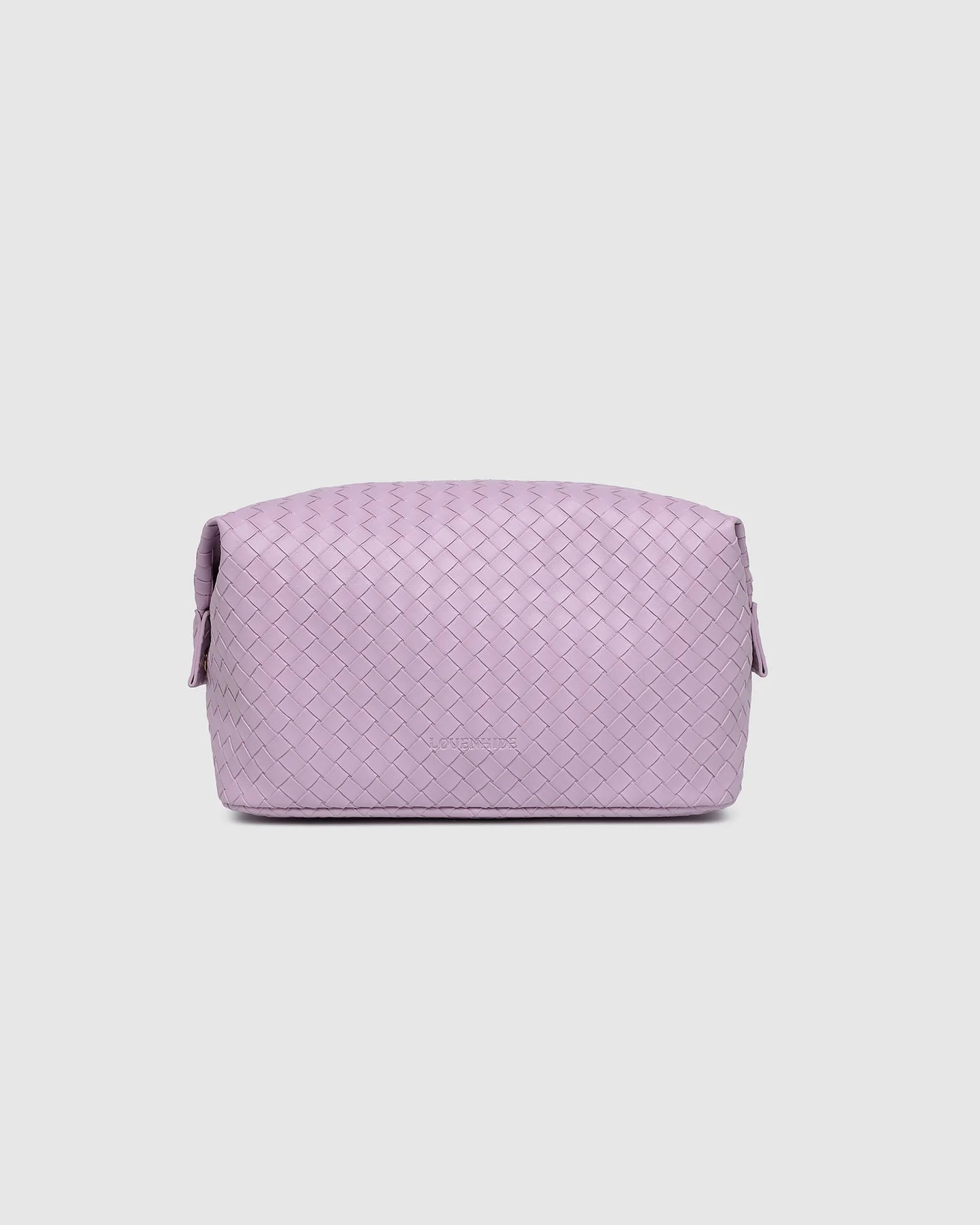 The Lucinda Woven Cosmetic Case is a travel cosmetic bag designed to bring a touch of summer style to your everyday routine. Crafted from woven vegan leather and finished in colours that speak to the season, Lucinda Woven is your go-to woven beauty case for summer travels and weekend escapes. Her structured silhouette opens to reveal a thoughtfully designed interior with a slip pocket to keep everything neatly organised. Side press studs allow you to adjust the shape for a more compact fit, while a secure zip ensures your must-haves stay safely tucked away. Whether you're packing light for a getaway or streamlining your daily routine, Lucinda Woven delivers the perfect blend of function and sunshine-ready style.