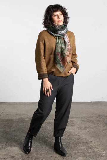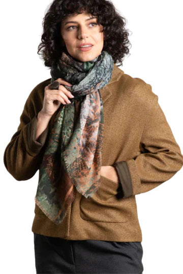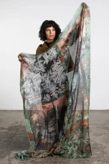 Fine merino wool scarf in original design by Dog and Boy. Modern forest print.