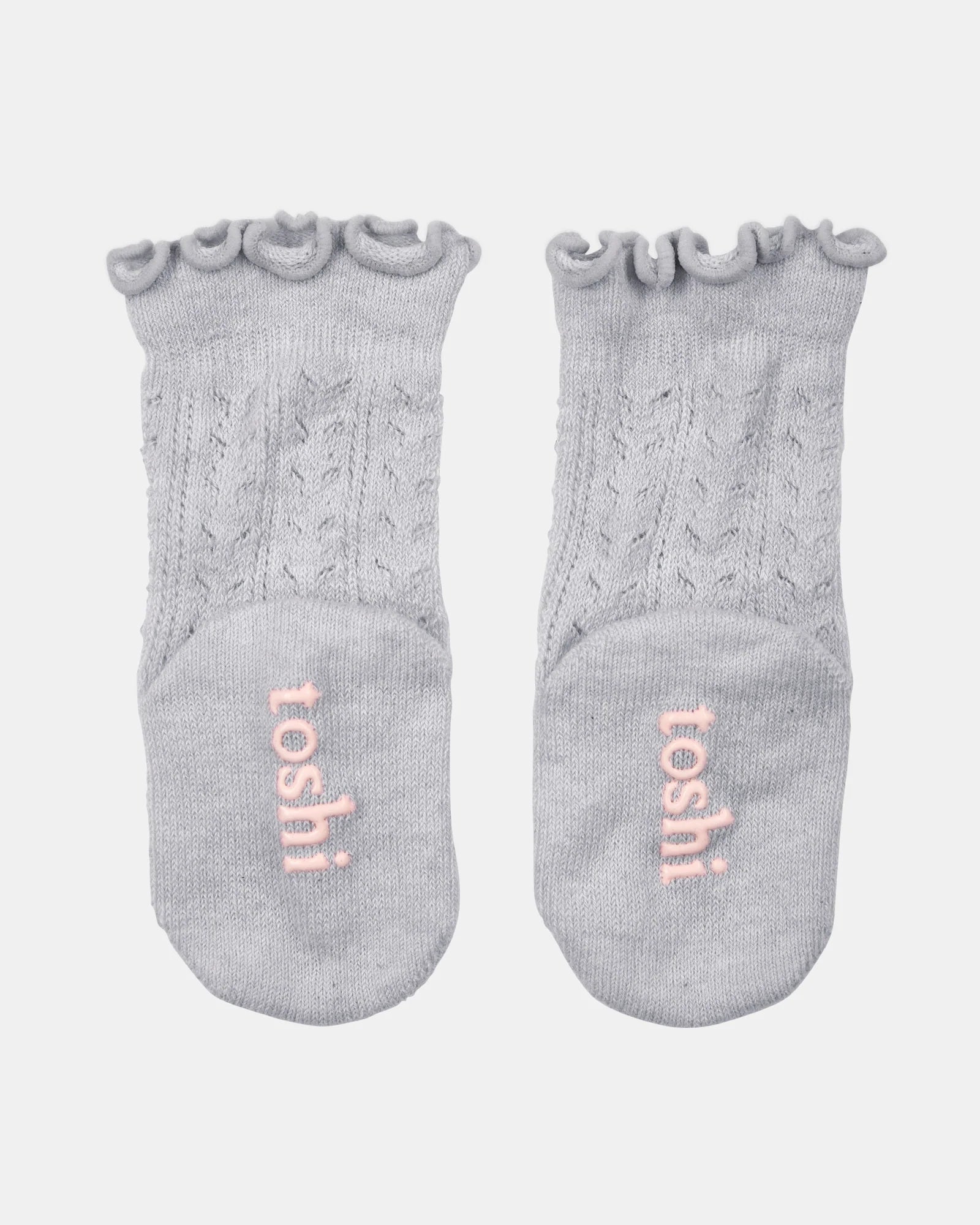 Toshi Organic Socks for toddlers feature a skid resistant sole grip to support safety during play. The gentle, contoured fit stays up comfortably while maintaining healthy circulation.