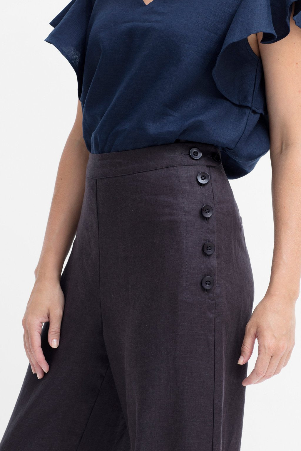 The Tora Pant is a classic, clever style which has a perennially delightful fit. Made from luxurious French linen, these pants feature a comfortable, rounded waist tab and a button detail at the side for added interest, with faux welt pockets at the back. Consider styling with a simple T-shirt or a printed shirt for an effortless, day-to-day outfit.